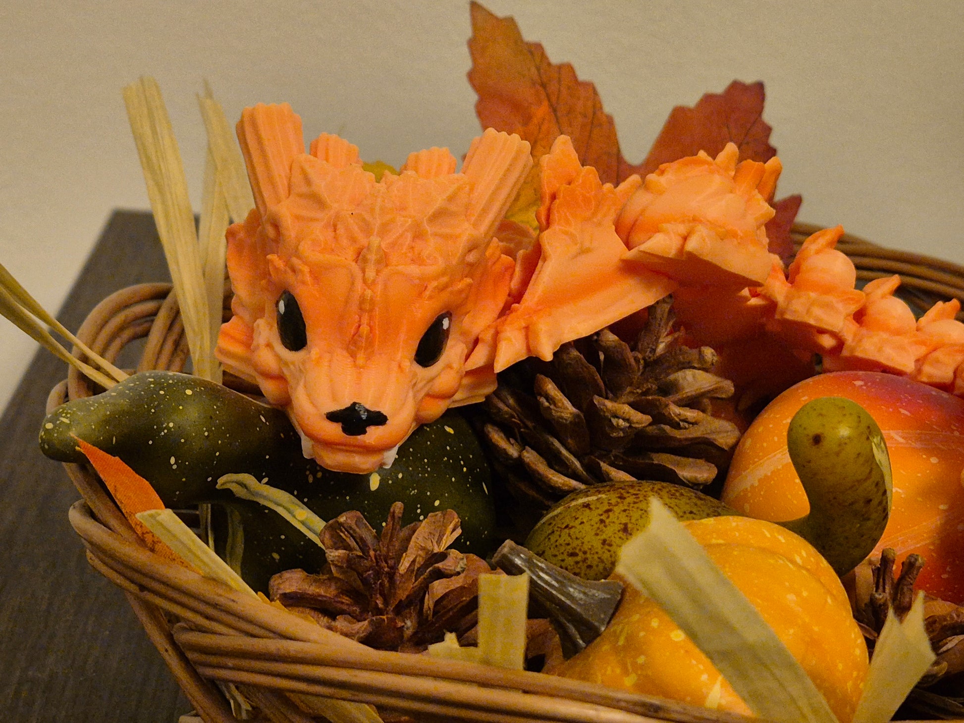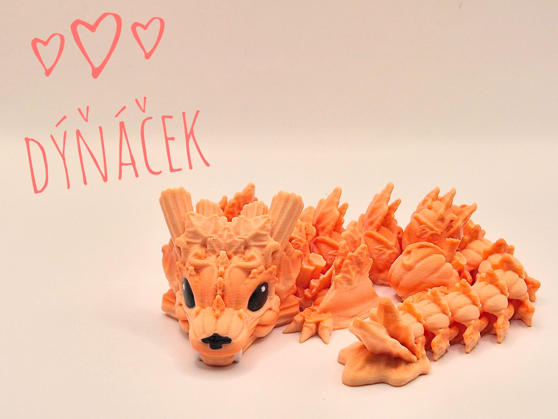Dýnáček je velký dráček který se právě vylíhnul mámě Duhovce na zahrádce mezi dýněmi. Těší se na nové kamarády, ujmete se ho?